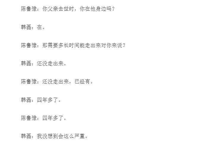 父亲的去世对韩磊打击特别大,他长达4年的时间里走不出来,一想起父亲心里就非常难受。